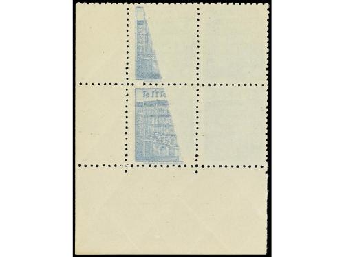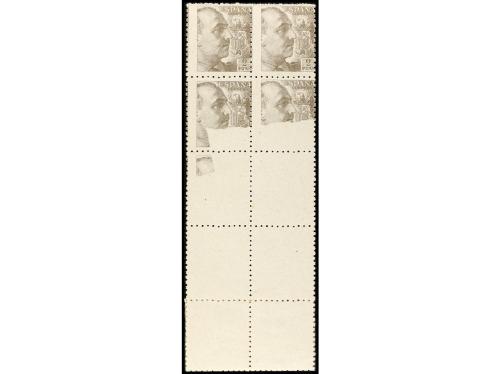 ** ESPAÑA. Ed. 932. 2 pts. castaño. Bloque de diez, tres sellos impresión parcial y cinco sellos sin imprimir. ESPECTACULAR y MUY RARO.