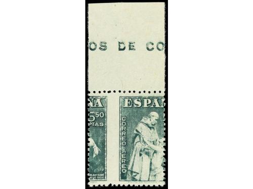 * ESPAÑA. Ed. 1002ccs (2). 50 cts. azul. COLOR CAMBIADO SIN DENTAR, en pareja horizontal con FUELLE DEL PAPEL. RARO.
