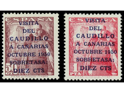 ** ESPAÑA. Ed. 1083A/B. CANARIAS CORREO I TIRADA. 2 valores. LUJO. Cert. CEM. Cat. 600€.