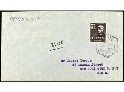 ESPAÑA. Ed. 1090. 1951. SANTA CRUZ DE TENERIFE a U.S.A. Sello de Canarias Aéreo. Raro sobre carta, al dorso llegada.