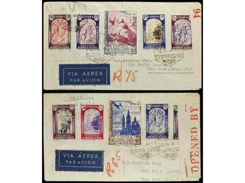 ESPAÑA. Ed. 904/13. 1940. MADRID a NEW YORK. Serie completa en dos cartas circuladas, al dorso llegadas. MUY BONITAS.