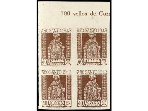 **/* ESPAÑA. Ed. 962s (4). 40 cts. castaño. Bloque de cuatro SIN DENTAR, cabecera de hoja. Arrugas propias de la emisión y un sello con fijasellos. Cat. 1.970€.