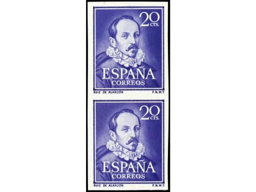 ** ESPAÑA. Ed. 1074s (2). ALARCÓN. 20 cts. violeta. Pareja vertical SIN DENTAR. LUJO. Cert. CEM. Cat. 3.200€.