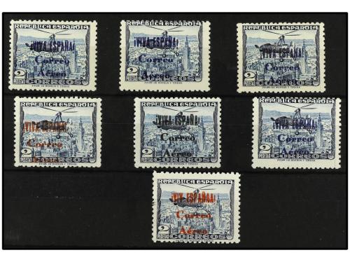 **/* ESPAÑA E. LOCALES PATRIOTICAS: BURGOS. Ed. 72. Conjunto de 7 sellos con variedades. Edifil 72hcc, 72hcca, 72hcce (2), 72hea, 72hec y 72hecb. INTERESANTE.