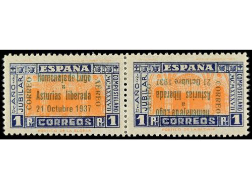 * ESPAÑA E. LOCALES PATRIOTICAS: LUGO. Ed. 12hphi. 1 peseta, pareja, uno HABILITACION INVERTIDA.