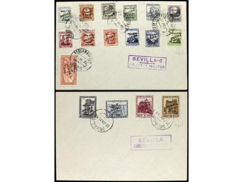 ESPAÑA E. LOCALES PATRIOTICAS: SEVILLA. Ed. 1/17hi. SERIE COMPLETA con HABILITACIÓN INVERTIDA en dos cartas no circuladas.