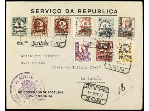 ESPAÑA E. LOCALES PATRIOTICAS: CORUÑA. Ed. 1/9. 1937. LA CORUÑA. Serie completa en carta, sin llegada.