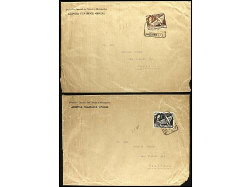 ESPAÑA. Ed. 26, 27. 1938. FRANQUICIAS. BARCELONA a VALENCIA. Dos cartas sellos de Franquicia de la A.F.O. en color castaño. Muy raros en carta.