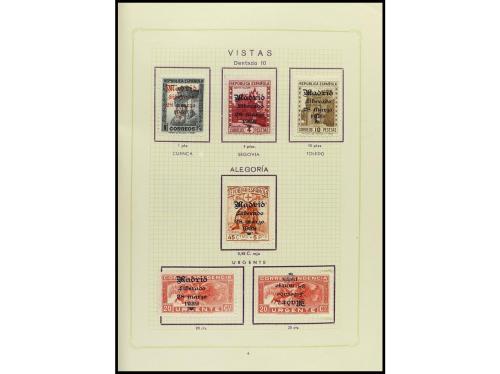 ESPAÑA E. LOCALES PATRIOTICAS: MADRID. Cuaderno conmemorativo de 59 sellos (se hicieron alrededor de 40 cuadernos, con tres opciones de 59, 72 y 92 sellos). Este contiene las series Ed.* 1/25 sin 10 ni 21 (está el rarísimo 4 pts. lila rosáceo, Ed. 22), más algunos invertidos; Ed. 26/49 completa más algunos invertidos, Ed. 50 y Ed. 56/7. Se trata de un cuaderno muy raro, ya que la mayoría se desmontaron para venta al detalle. Se incluye Ed. ** 52 (tirada de 30) y Ed. ** 54 (tirada de 50). MUY RARO CONJUNTO. Ver foto en web.