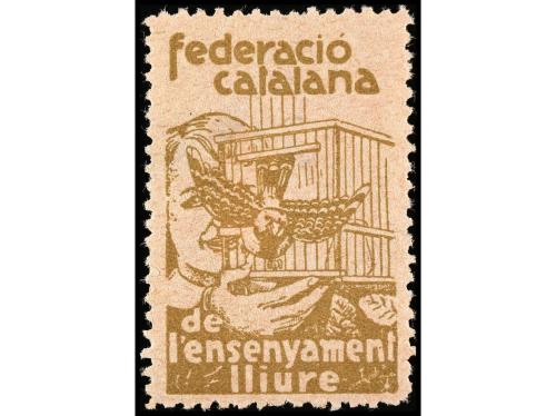 ESPAÑA GUERRA CIVIL. BARCELONA. FEDERACIÓ CATALANA DEL ENSENYAMENT LLIURE sin valor castaño sobre rosa. No reseñado. MUY RARA.