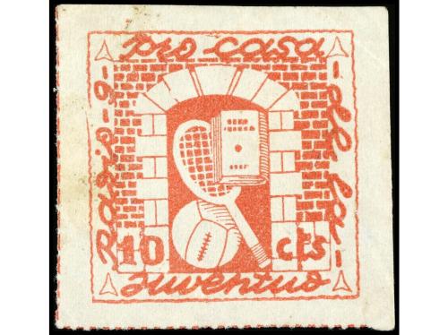* ESPAÑA GUERRA CIVIL. AVILÉS. 10 c. rojo. J.S.U. MUY RARO. (All. 1).