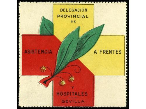 ESPAÑA GUERRA CIVIL. SEVILLA. FRENTES y HOSPITALES tamaño 69x67 mm. No reseñada en este formato en Allepuz (Similar en formato 68x68, All. 6). RARÍSIMA .