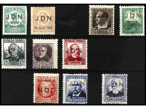 * ESPAÑA E. LOCALES PATRIOTICAS: SALAMANCA. Ed. 1/2, 4/11. SERIE COMPLETA. 10 valores a falta de un sello de 2 c. El 30 c. es HABILITACIÓN INVERTIDA. RAROS.