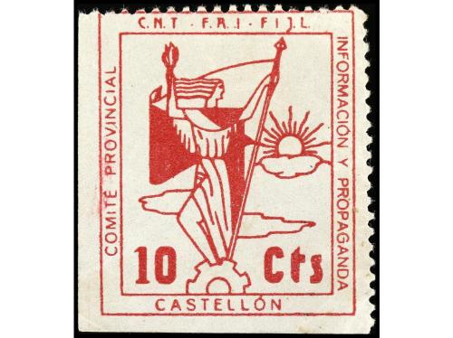 * ESPAÑA GUERRA CIVIL. CASTELLÓN. 10 c. rojo. CNT. RARO. (All. 19) .