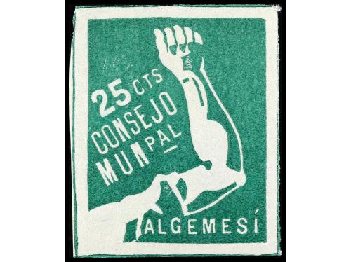 * ESPAÑA GUERRA CIVIL. ALGEMESÍ. 25 c. verde. Consejo Municipal. RARO. (All. 6).