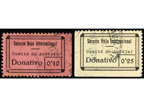 ° ESPAÑA GUERRA CIVIL. ANDÚJAR. 10 c. rosa y 25 c. amarillo. S.R.I. RAROS. (All. 1, 3).