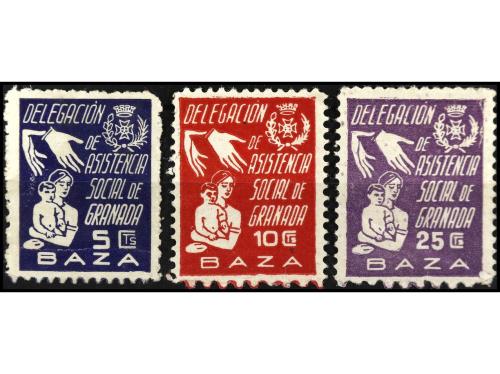 * ESPAÑA GUERRA CIVIL. BAZA. Serie completa. 3 valores. Asistencia Social. Pliegues. RAROS. (All. 1/3).