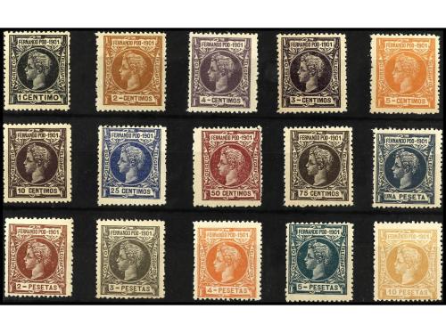 ** COLONIAS ESPAÑOLAS: FERNANDO POO. Ed. 95/109. SERIE COMPLETA, centrajes diversos. MUY BONITA. Cat. 700€.