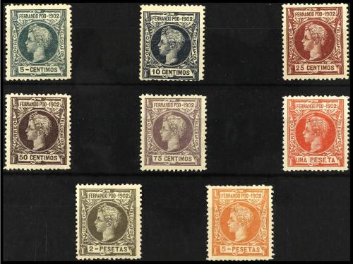 ** COLONIAS ESPAÑOLAS: FERNANDO POO. Ed. 110/17. SERIE COMPLETA, nº A000,000. Excelentes centrajes, muy rara así. LUJO. Cat. 450€.