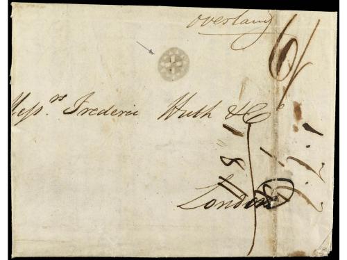 FILIPINAS. 1846. MANILA a LONDRES. Circulada vía Hong-Kong, Calcuta, Suez, Alexandria y Southampton. Marca en el frente "cruz dentro de un círculo" probablemente de origen privado.