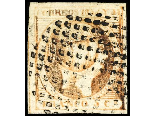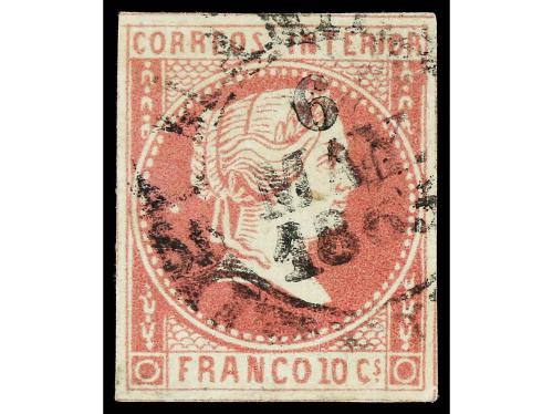 ° COLONIAS ESPAÑOLAS: CUBA. Ed. 4. Y 1/4 s. 2 reales carmín. Tipo I, mat. parrilla colonial. Muy bonito ejemplar. Cert. ECHENAGUSIA.
