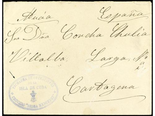 CUBA. 1895. CUBA a CARTAGENA. Marca de franquicia ESCUADRA DE OPERACIONES/EN LA ISLA DE CUBA/CRUCERO REINA MERCEDES.