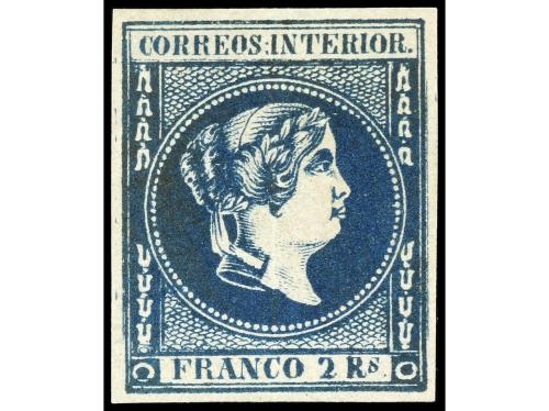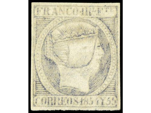* FILIPINAS. Ed. 3b. 1 real azul grisáceo. Buenos márgenes e impresión fina. Precioso y raro en esta calidad. Cert. COMEX. Cat. 1.375€.