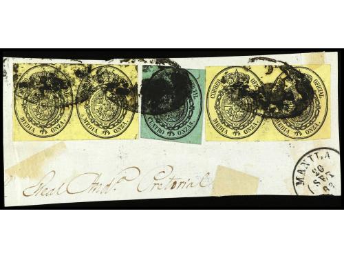 Δ FILIPINAS. Ed. 6A (4) y 6C. CORREO OFICIAL. 1/2 onza (2 parejas) y 4 onzas, sobre pequeño fragmento. MUY RARO.