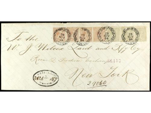 CUBA. Ed. 115/16. 1894. Sobre certificado de CIENFUEGOS a NEW YORK. 5 c. (3) y 10 c. (4), mat. fechador. PRECIOSO.