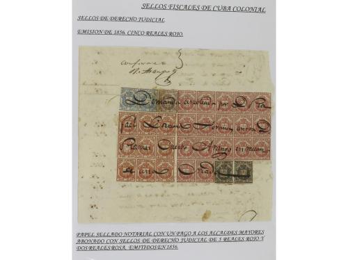 CUBA. 1854-1899. Colección de DOCUMENTOS con sellos fiscales diversos montada en hojas de álbum. INTERESANTE.