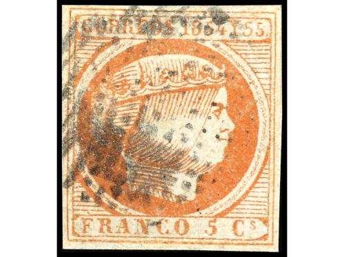 ° FILIPINAS. Ed. 6. 5 cuartos bermellón, mat. círculo de puntos. Adelgazamientos. Sello MUY RARO. Cert. CEM. Cat. 1.700€.