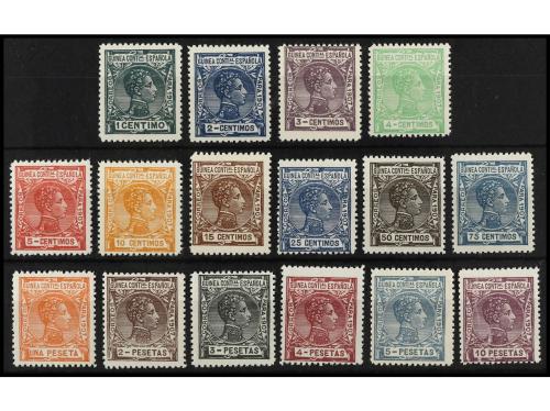 * COLONIAS ESPAÑOLAS: GUINEA. Ed. A1/A15. SERIE COMPLETA a falta del 5 pts. verde. Algún sello pequeños defectos. RARÍSIMA. Cert. COMEX.