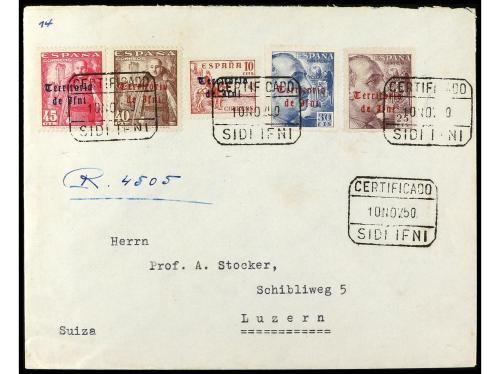 COLONIAS ESPAÑOLAS: IFNI. Ed. 40, 43/46. 1950. IFNI a SUIZA. Carta certificada, precioso franqueo, al dorso llegada.