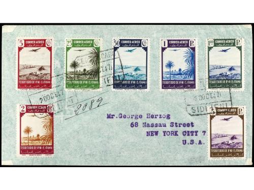 COLONIAS ESPAÑOLAS: IFNI. Ed. 28/34. 1947. IFNI a NEW YORK. Precioso franqueo en carta certificada, al dorso llegada.