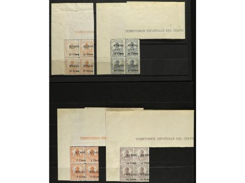 ** COLONIAS ESPAÑOLAS: GUINEA. Ed. 124/7 (4). SERIE COMPLETA. 4 valores en bloques de 4, cabecera de hoja. RARA. Cat. 1.800€.