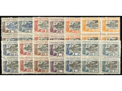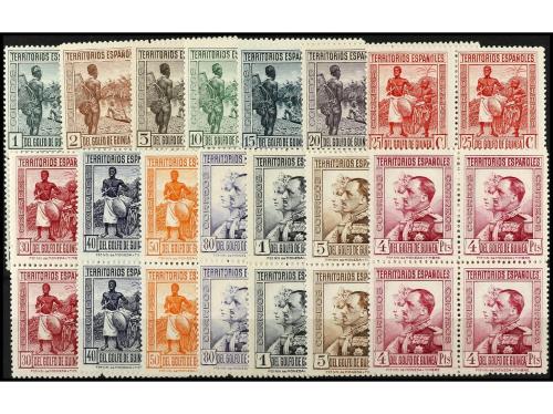 ** COLONIAS ESPAÑOLAS: GUINEA. Ed. 202/15 (4). SERIE COMPLETA. 14 valores en bloques de cuatro. Cat. 1.160€.