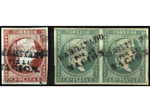 (*) FILIPINAS. Ed. 20D, ° 20E. 1 real pareja y 2 reales sin goma y usado, HABILITADOS POR LA NACIÓN. Cat. 733€.