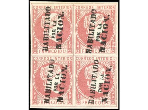 ** FILIPINAS. Ed. 20F. 10 cuartos rosa, bloque de cuatro, HABILITADO POR LA NACIÓN. PRECIOSO. Cat. 400+€.