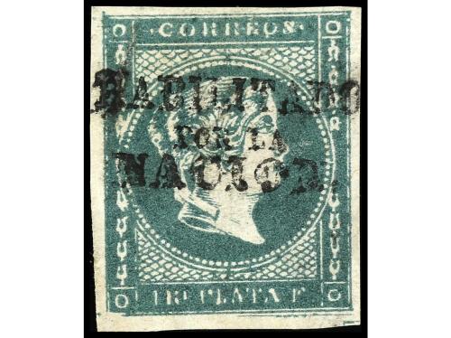 * FILIPINAS. Ed. 16. 1 real verde esmeralda, grandes márgenes. Punto claro (thin spot). Cat. 300€.