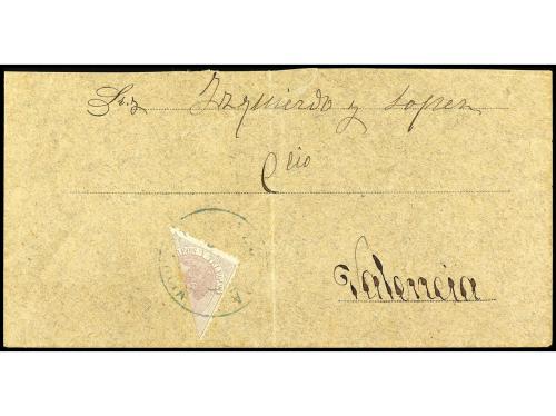 ESPAÑA. Ed. 211. 1882. CULLERA a VALENCIA. 30 cts. lila bisectado para ser usado como 15 cts. (sobre algo reducido por la parte superior). Rarísimo y no reseñado, primer ejemplar que vemos en carta. Al dorso llegada.