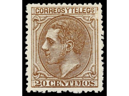 * ESPAÑA. Ed. 203. 20 cts. castaño. MAGNÍFICO EJEMPLAR. Cert. GRAUS. Cat. 176€.