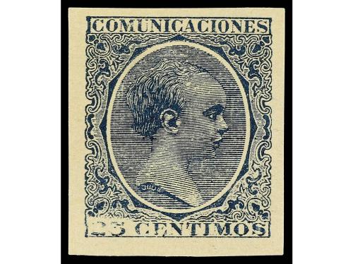 * ESPAÑA. Ed. 221s. 25 cts. azul SIN DENTAR defecto de impresión en el cartucho inferior.