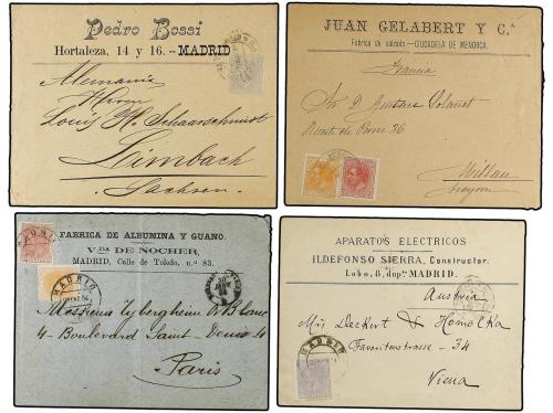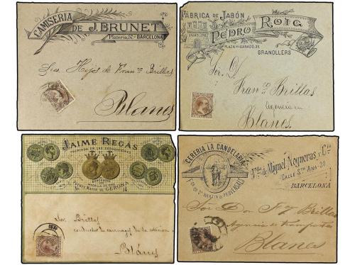 ESPAÑA. 1890-98. Conjunto de 12 sobres con sellos de Alfonso XIII Pelón y con MEMBRETES e ILUSTRACIONES impresas en el anverso, algunos muy espectaculares. Interesante conjunto con un gran potencial de expansión.