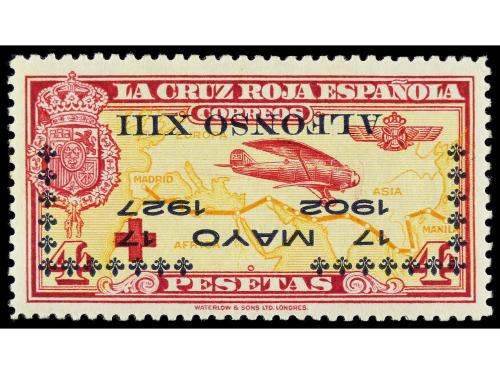 * ESPAÑA. Ed. 372hi. 4 pts. carmín y amarillo. HABILITACIÓN INVERTIDA. MUY BONITO.
