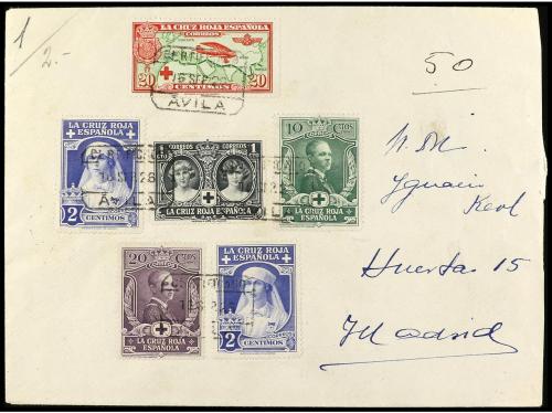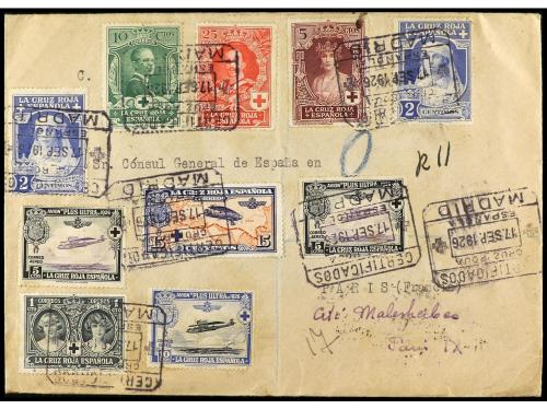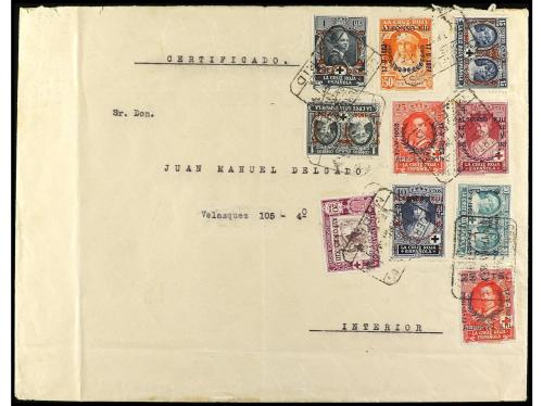 ESPAÑA. 1926-28. EMISIONES DE LA CRUZ ROJA. Conjunto de 16 cartas, diversos franqueos.