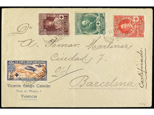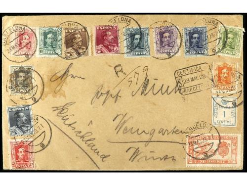 ESPAÑA. Ed. 327/28, 331, 341. 1926. VALENCIA a BARCELONA. Carta certificada, al dorso llegada.