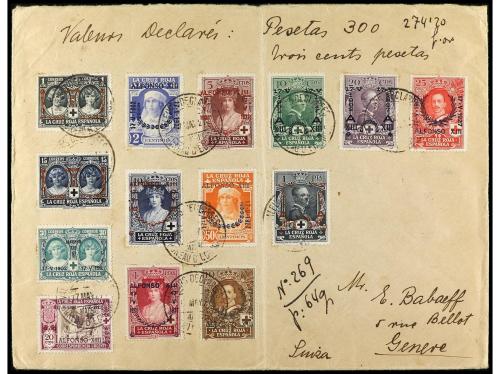 ESPAÑA. Ed. 349/62. 1927. MADRID a SUIZA. Serie completa en carta circulada, al dorso llegada. RARA.