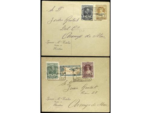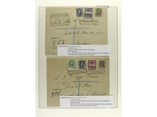 ESPAÑA. 1930. Cuatro cartas con diversos franqueos con mat. especial de la Exposición Filatélica Nacional de Barcelona.