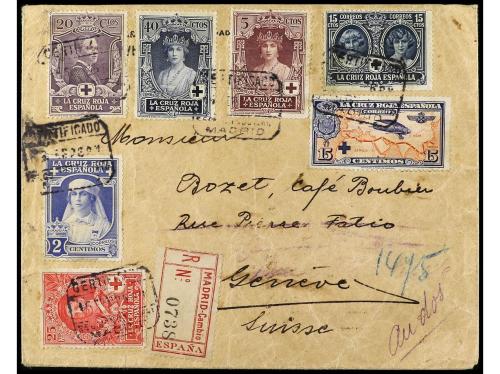 ESPAÑA. Ed. 326/27, 329/33, 341. 1926. MADRID a SUIZA. Carta certificada, precioso franqueo, al dorso llegada.