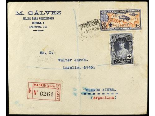 ESPAÑA. Ed. 333, 341. 1926. MADRID a BUENOS AIRES. 15 cts. y 40 cts. carta certificada, al dorso llegada.